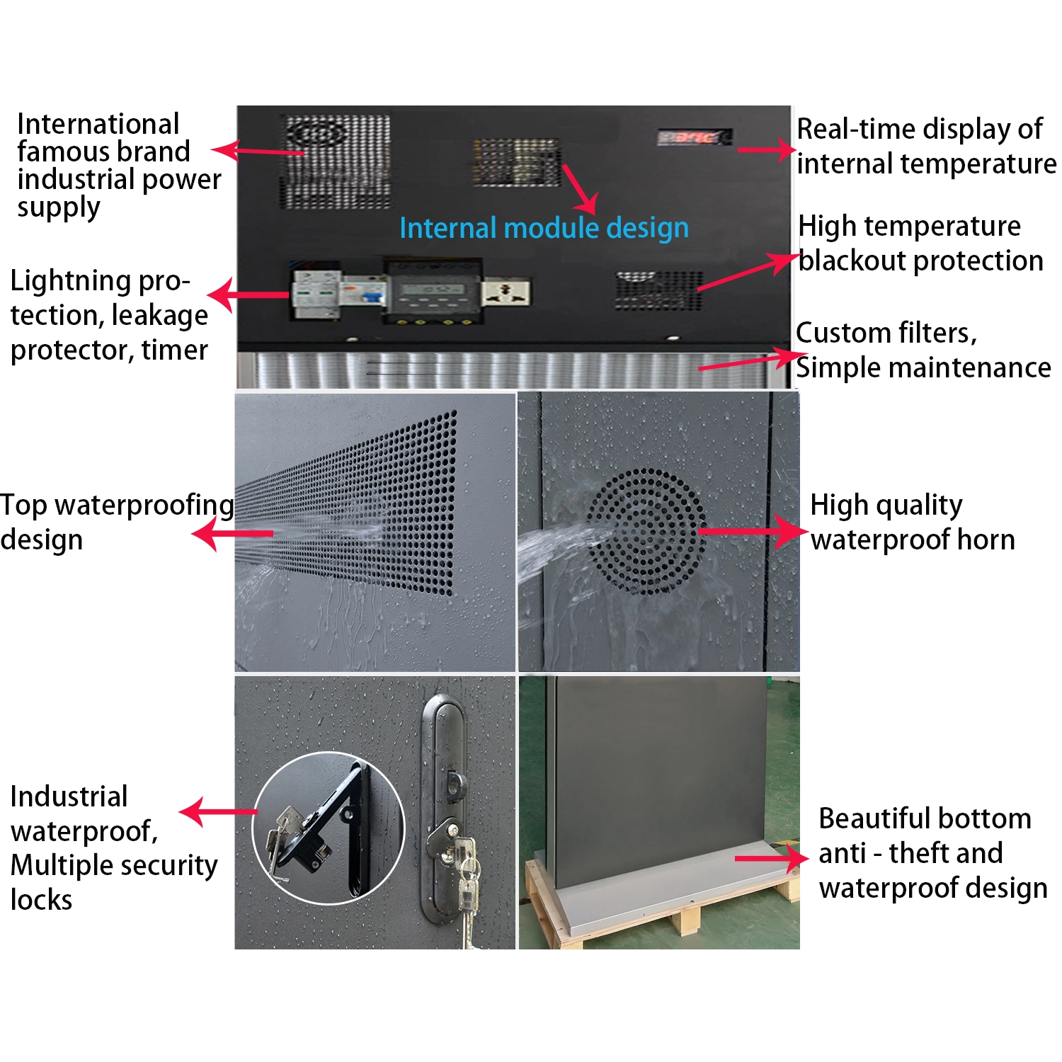 IP65,Three layer compound sealant strip, multi angle water free,Three level door lock protection, hidden screw design