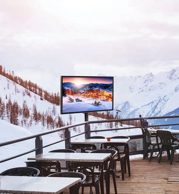 55 inches LD display with waterproof and dustproof for outdoor use, keep working under sonwing, raing and dusting