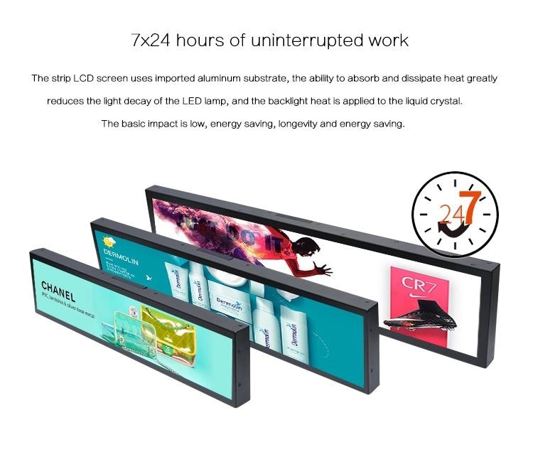 38.5 inch stretch bar display from shenzhen risingstar, high brightness strip wide supermarket advertising screen