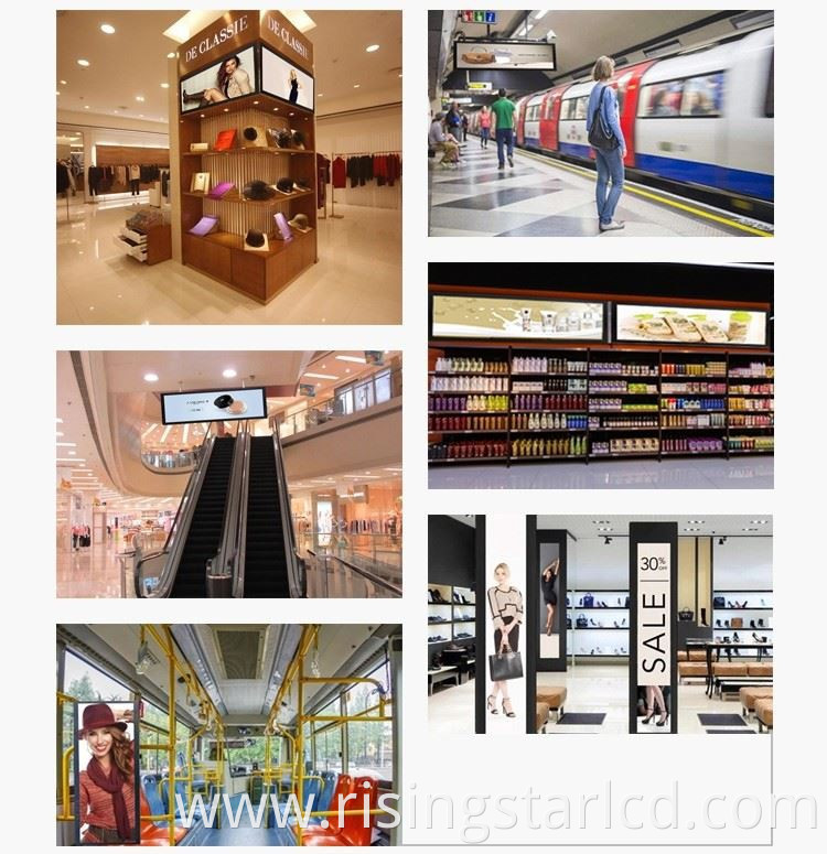 23inch stretched is widely used in supermarket shelf, subway station,elevator and bus .